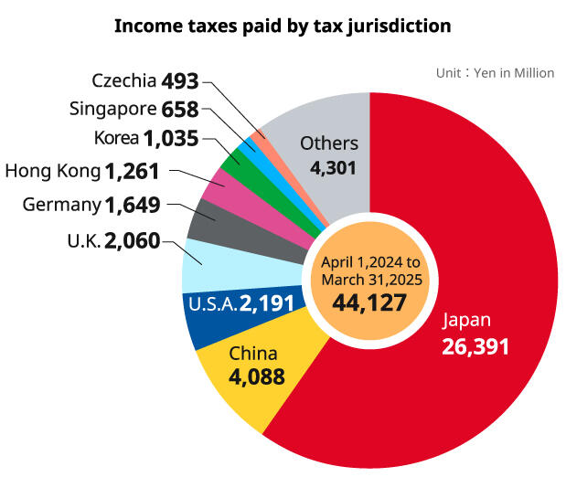 April 1, 2024 to March 31, 2025: 44,127 Million Yen (by tax jurisdiction)